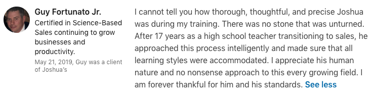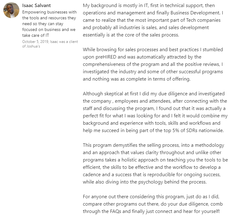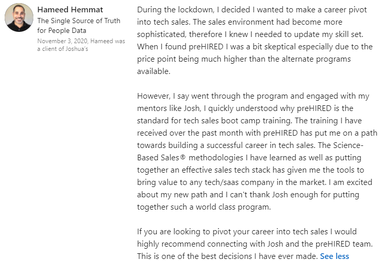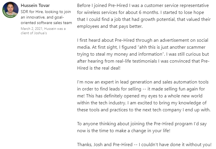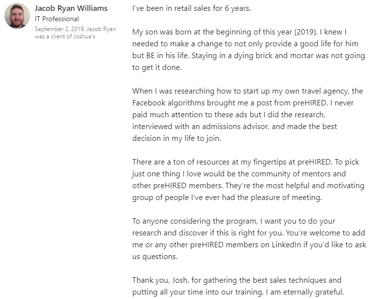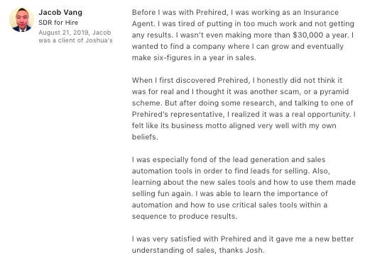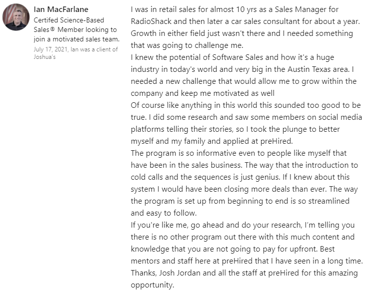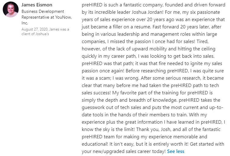 "I struggled for 10 years in insurance sales... and now, in just weeks I have my dream sales job at $90,000 this year."
