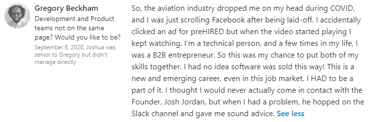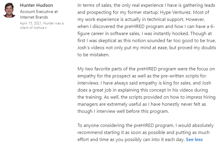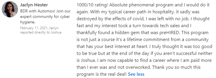 "Two days to interviewing at my #1 company pick... Prehired is the best investment I have EVER made!"