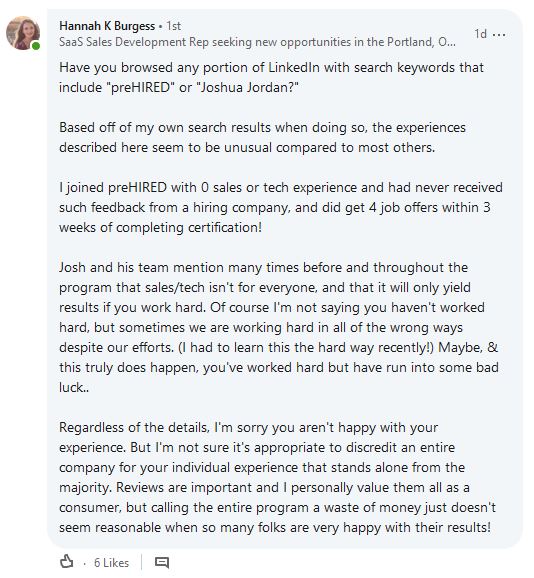 "If you're doubtful, I understand. I was, too. But, at the end, I had 3 job offers. I actually accepted one. It didn't work out. Luckily, I had another one right behind it. And I'm still getting requests for interviews right now."