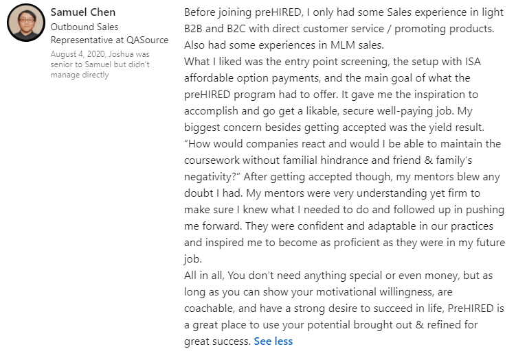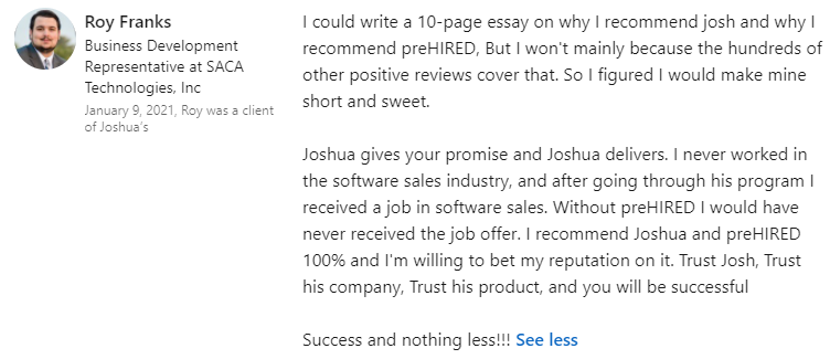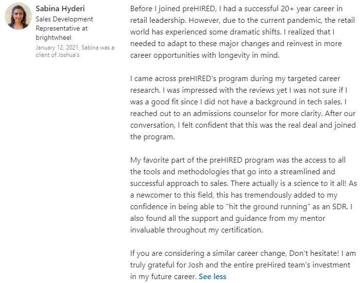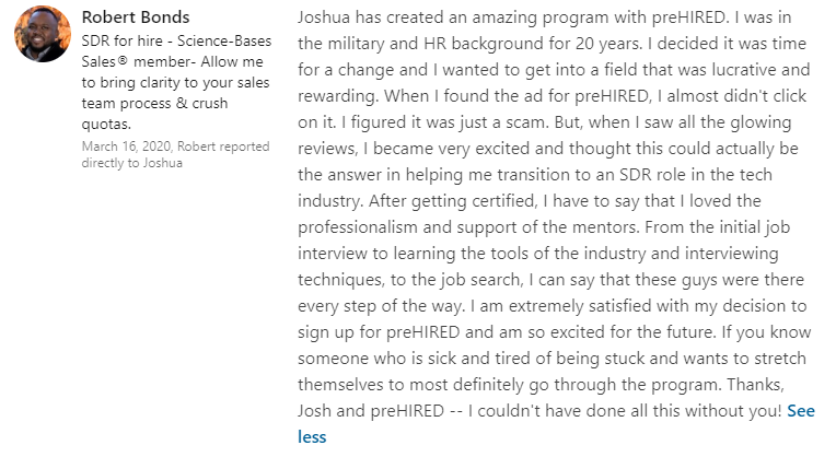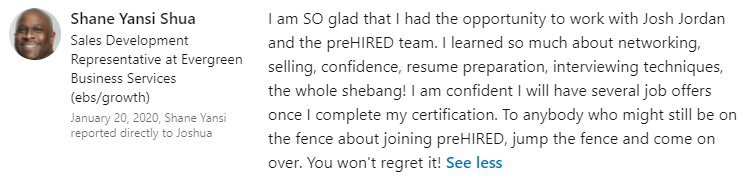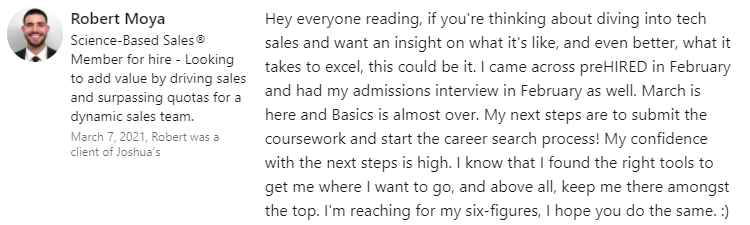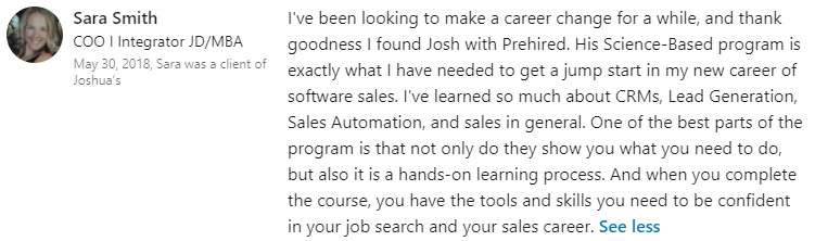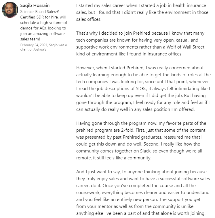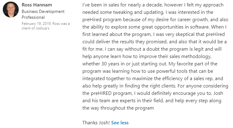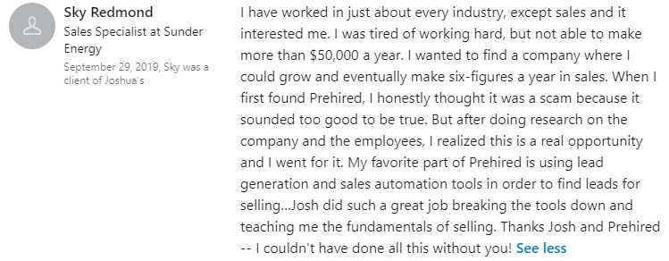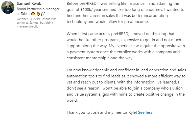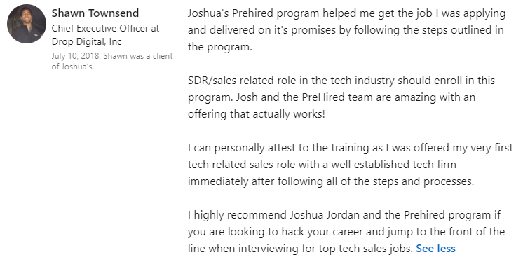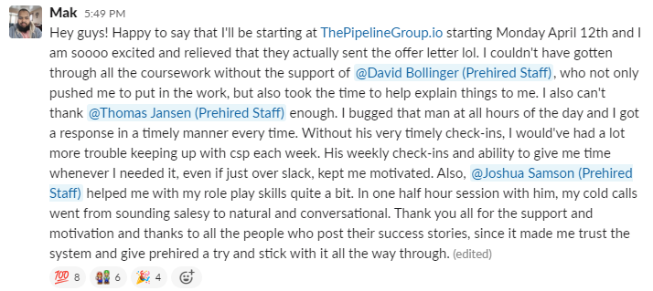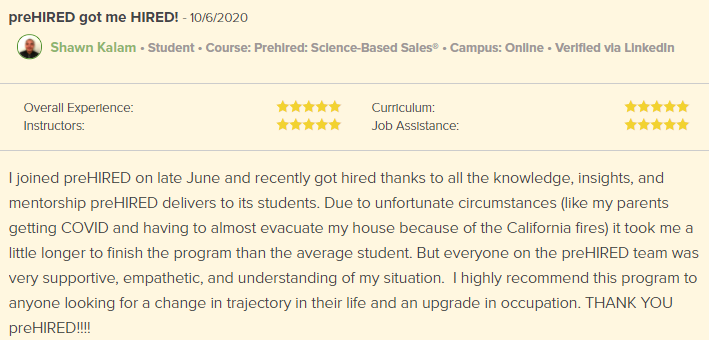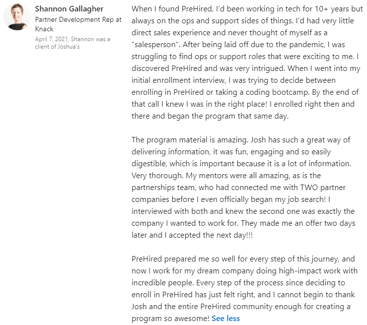 “I was definitely just focused on remote-only jobs. I had 5 offers. I fully endorse everyone at Prehired. It’s the real deal.â€