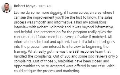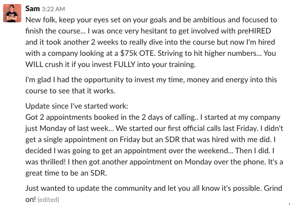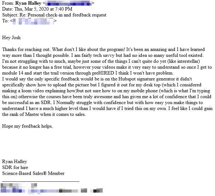 "I thought, man, is it going to be the same way (as another course) where it's not very accountable, not a practical as I thought, and not as integrated with my schedule. It's not that. I applied to 22 jobs...80% opened emails... 50% responded...40% interviews."