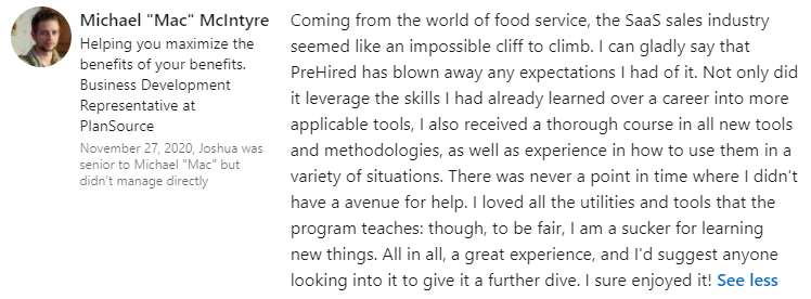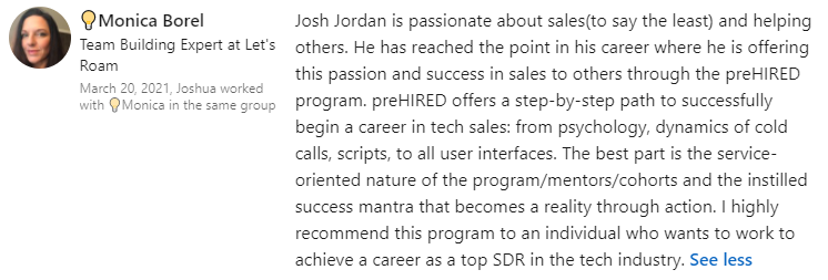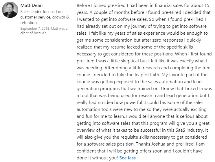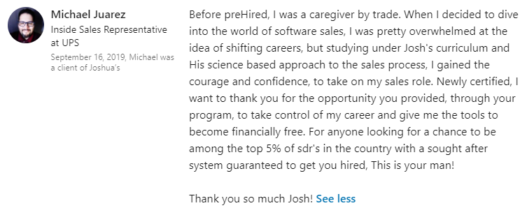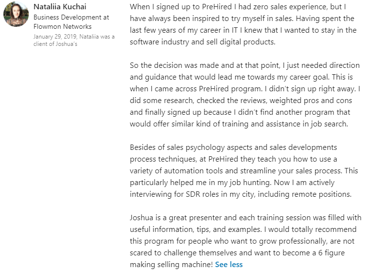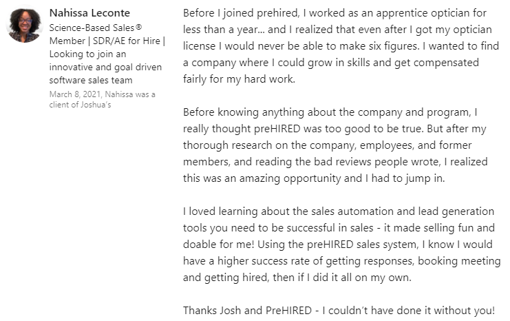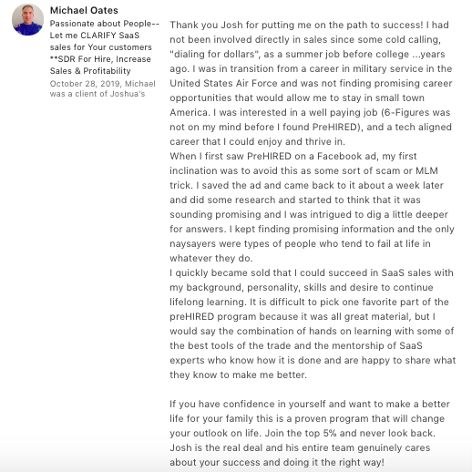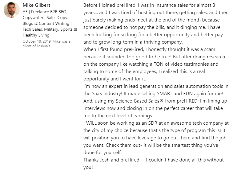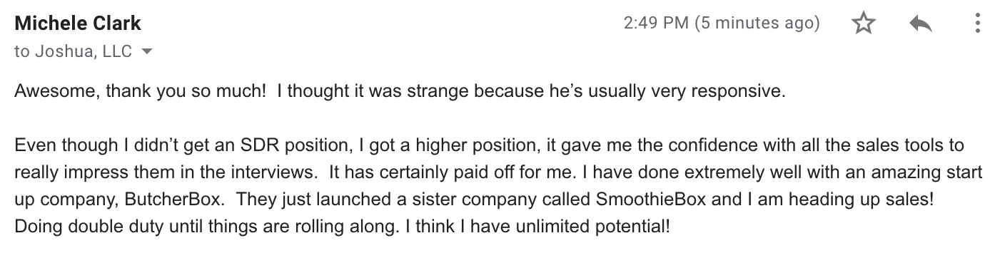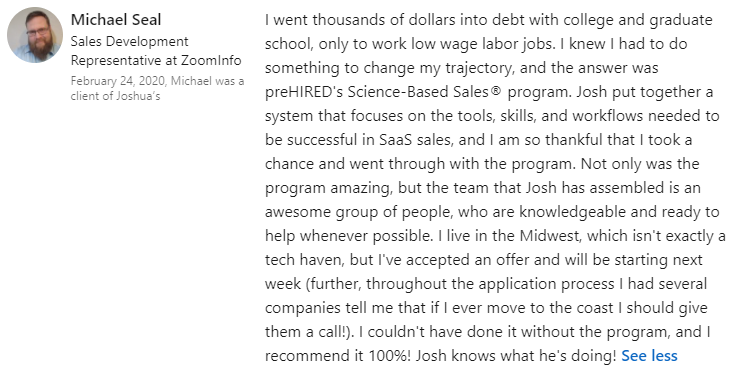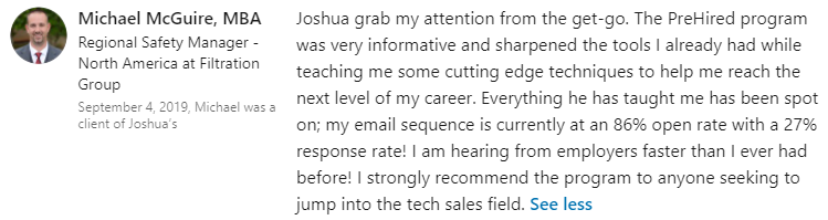 "I thought this was a scam... but I got the tech sales job I wanted in 30 days."